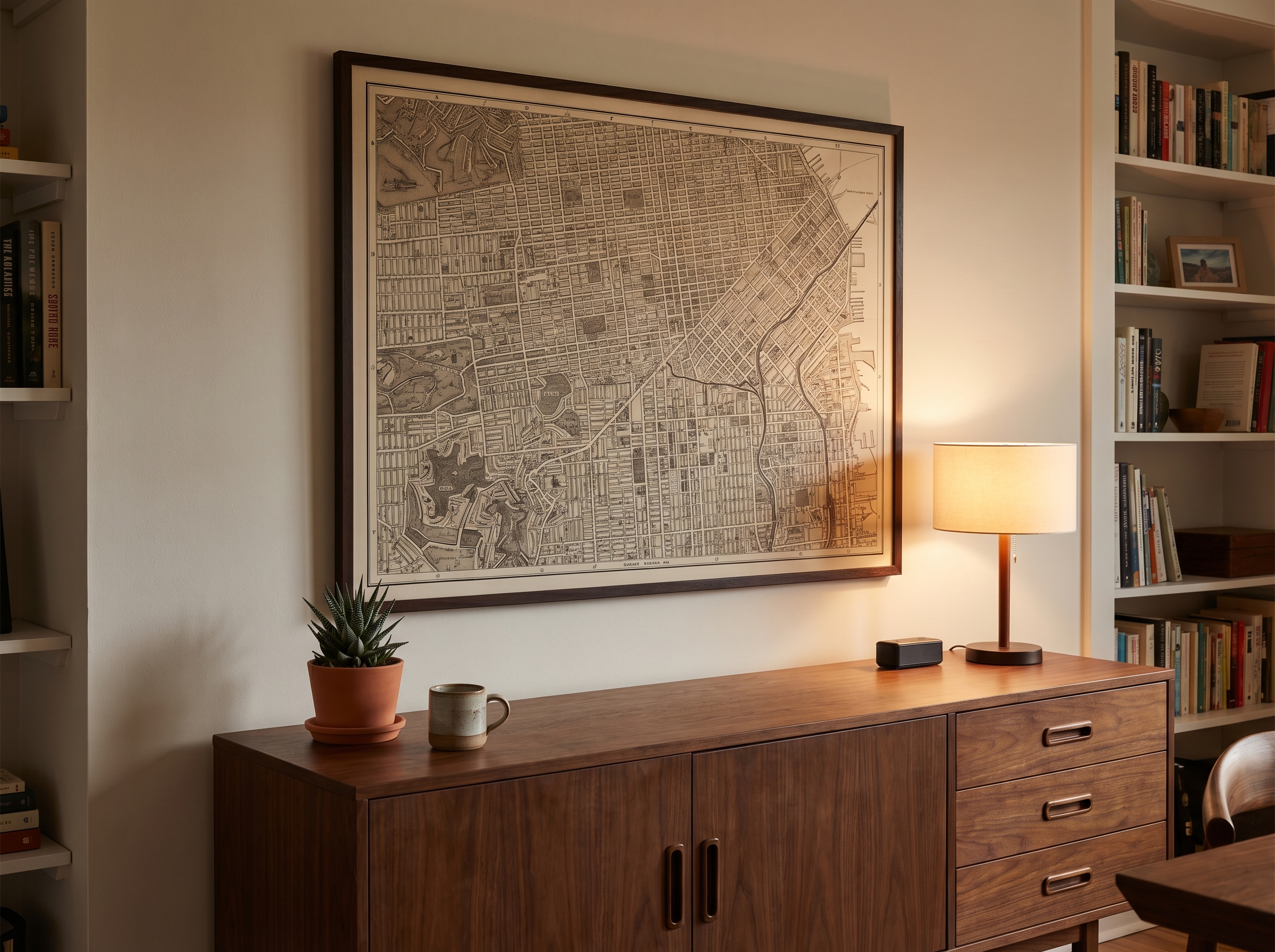 Map prints face a challenge that abstract wall art doesn't: legibility. A city map with street labels and district names needs enough physical size and pixel density for those details to be readable when printed. Too small or too low-res, and the map becomes decorative noise rather than a meaningful keepsake.